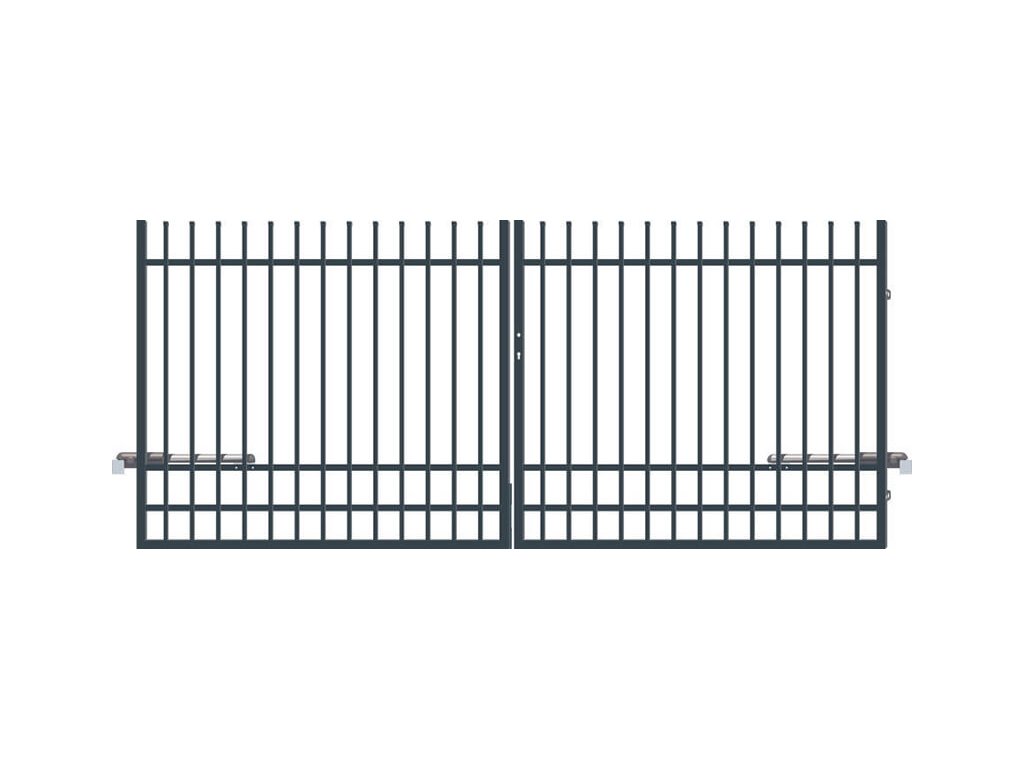 Systém NICE je oblíbený pro jeho nerušenou jednoduchou linii, která je často preferována v moderní architektuře. Součástí dvoukřídlé brány Nice je také elektrický pohon, který je již zahrnut v balení. Upozorňujeme, že dvoukřídlá brána s pohonem nemůže být instalována na betonové sloupky, ale doporučujeme kovové sloupky doporučené výrobcem. Co se týče technických parametrů, má šířku 350 (či 354) cm a výšku 150 cm. Profil výplně má rozměr 16x16 mm a profil rámu 40x40 mm. Brána je vyrobena z oceli a její povrch je ošetřen protikorozní ochranou zinkem a antracitovou matnou barvou (RAL 7016).