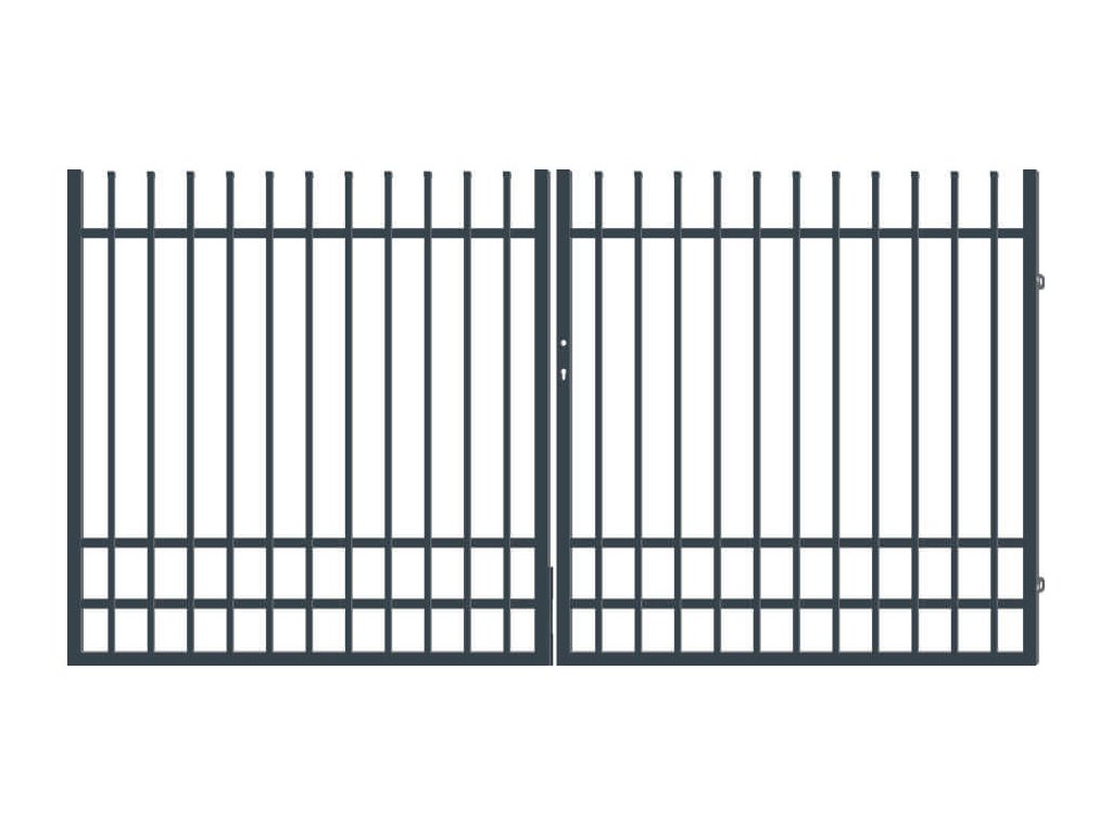 Svým jednoduchým a čistým designem se systém NICE stal favoritem moderní architektury. Součástí balení dvoukřídlé brány Nice je také elektrický pohon. Upozorňujeme, že instalace dvoukřídlé brány s pohonem na betonové sloupky není možná; doporučujeme použití kovových sloupků, jak doporučuje výrobce. Brána má šířku 400 (404) cm a výšku 150 cm. Profil výplně má rozměry 16x16 mm, zatímco profil rámu dosahuje 40x40 mm. Materiálem použitým pro tuto bránu je ocel, která je následně upravena protikorozní ochranou zinkem a dokončena antracitovou matnou barvou (RAL 7016).