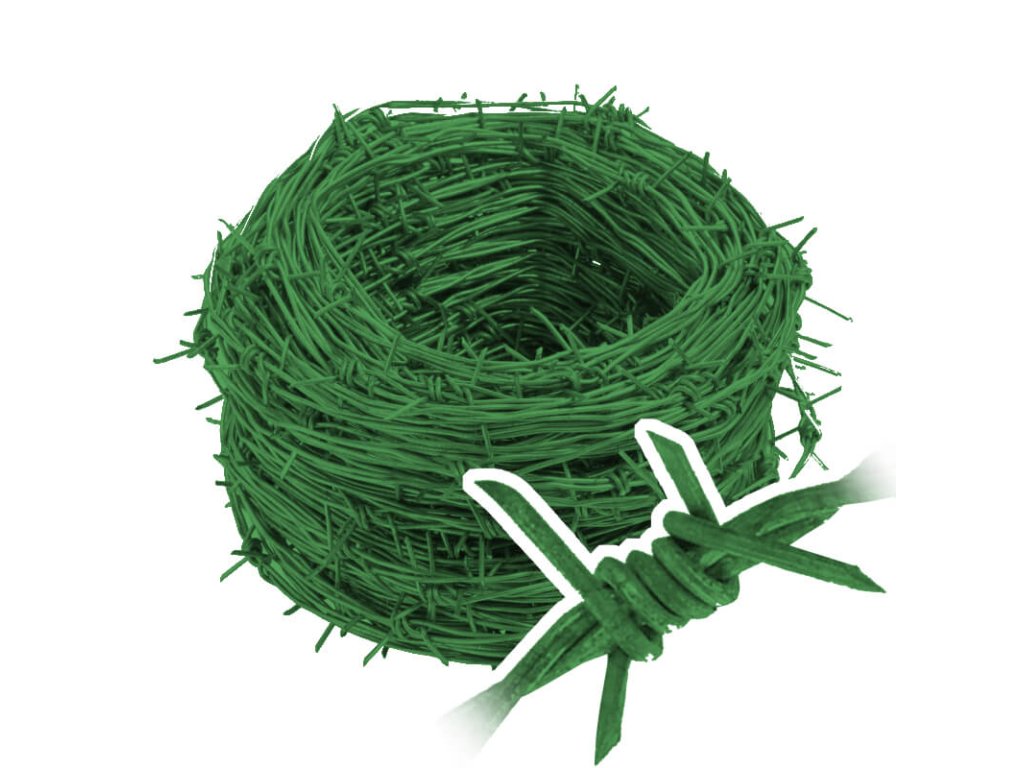 Ostnatý drát, pokrytý zinekem a PVC, má délku 100 metrů.