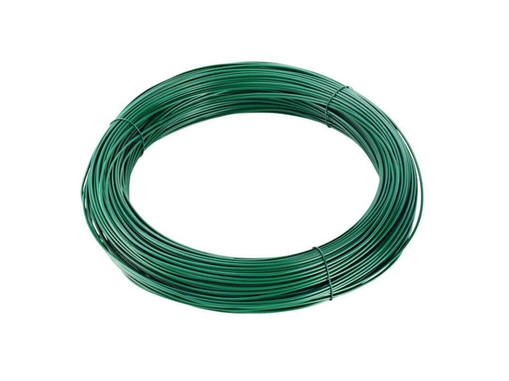 Vázací drát PVC o průměru 1,4 mm, zelené barvy, je zinkovaný a pokrytý plastem. Jeho skutečná síla činí 1,0 mm a s plastovým obalem 1,4 mm, přičemž celková délka drátu je 24 metrů.