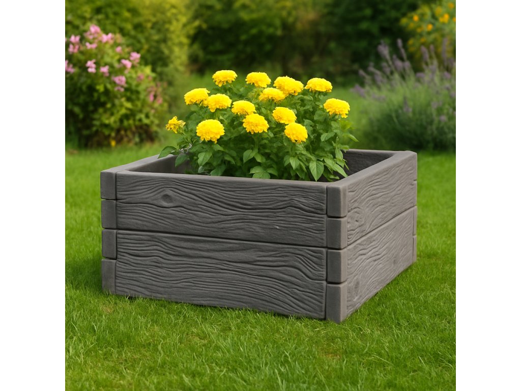 Představujeme vyvýšený záhon v dekoru štípaného kamene nebo dekoru dřeva, který vaši zahradu promění ve výstavní prostor na ploše 1 x 1 metr. Štípaný kámen v dodávaných odstínech přináší přírodní estetiku a betonová struktura zaručuje dlouhověkost.